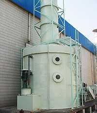 玻璃鋼洗滌塔是硫酸生產線的主要設備,該塔的主要作用是:由塔底進塔的帶有礦塵、砷、硒、氟、二氧化硫等雜質和二氧化碳氣體,經填料層,由塔頂排出。而稀硫酸通過塔頂的噴嘴噴淋,使之填料層中氣液充分接觸,除去雜質,達到凈化氣體的作用。